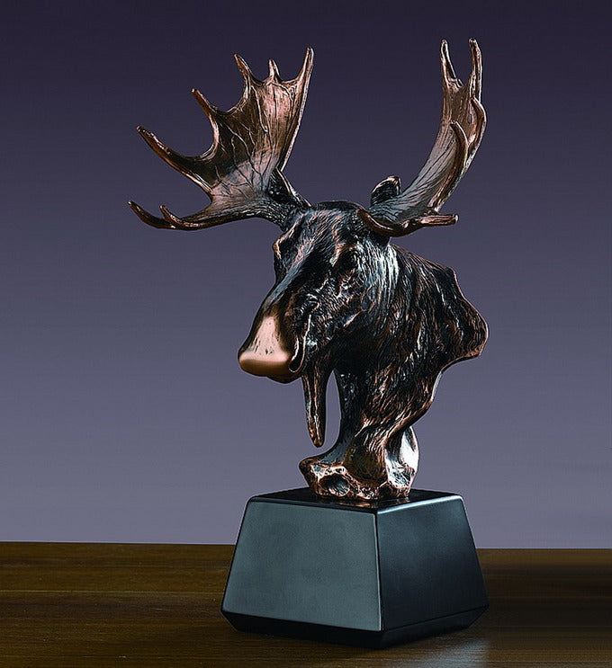This beautiful Bronze Plated Moose Head Sculpture is individually bronze plated and to the finest detail. The complicated procedure makes the piece of exceptionally fine detail as well as lasting durability. This sculpture is a...