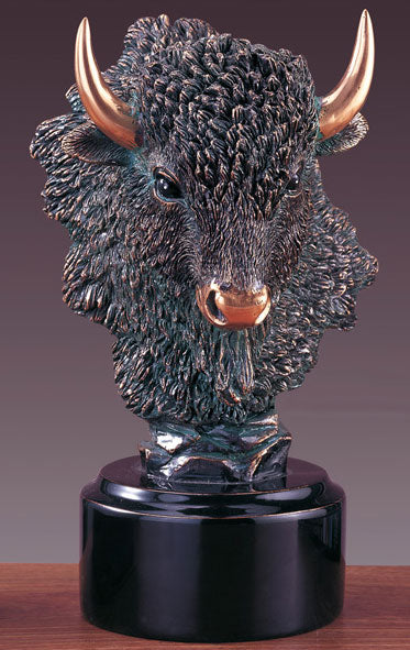 Bring elegance into your home or office with this stunning Bronze Plated Buffalo Head Sculpture. Famous for quality, design and detail, each of these bronze electroplated resin sculptures represents the beauty of nature. with t...