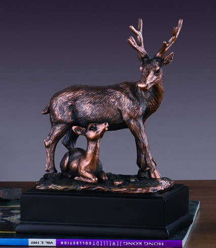 This Buck and Fawn Sculpture is meticulously crafted by hand ensuring this piece is of exceptionally fine detail as well as lasting durability. Individually bronze plated and designed to add beauty to your home or office.
