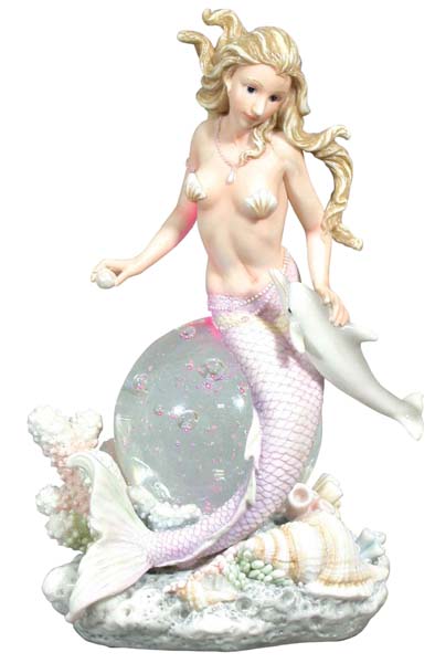 This beautiful Mermaid and Dolphin Figurine features a sculpted LED light that produces smooth, transient lights by mixing Blue/Red/Green color shining through the fiber crystal ball to maximize visual display. A truly unique g...