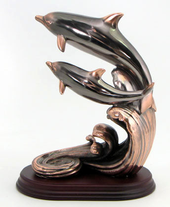 This exquisite Duo Dolphins on Wave Sculpture is meticulously crafted by hand to ensure the finest details and quality. The stunning design will enhance the beauty of your home or office. An elegant and timeless piece of artwor...