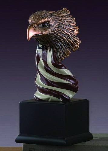 Bring elegance into your home or office with this stunning Eagle Head with American Flag Statue. Famous for quality, design and detail, each of these bronze electroplated resin sculptures represents the beauty of nature. with t...