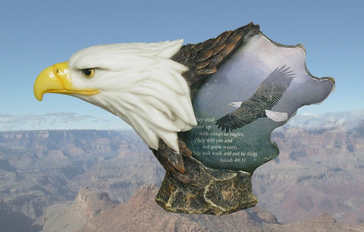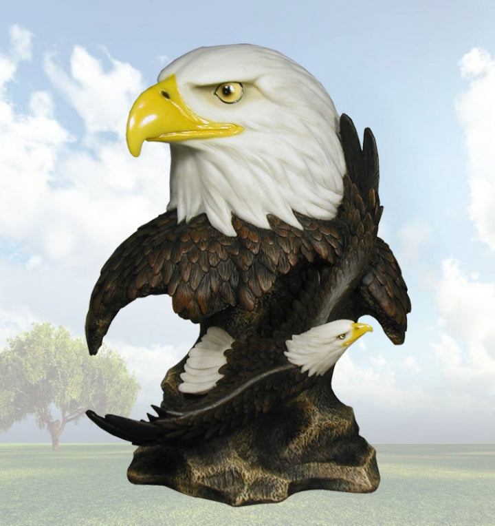 This "Destination Free" Eagle Head Sculpture features incredible detail with piercing realistic eyes. This beautiful piece of artwork will bring a lifetime of enjoyment to your family and friends. The perfect accent to your hom...