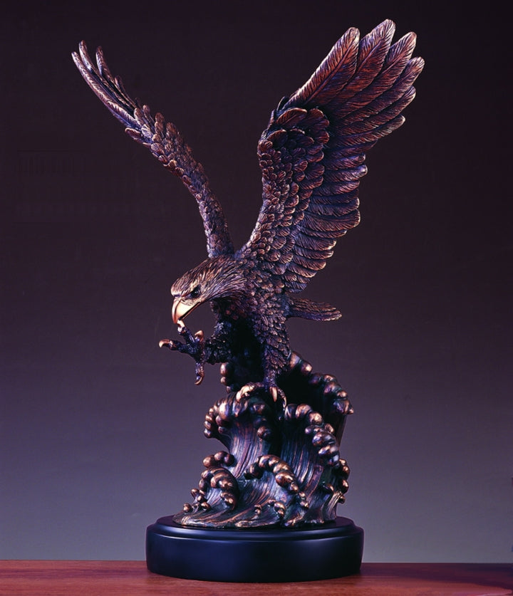 Bring elegance into your home or office with this Eagle on Waves Sculpture. Famous for quality, design and detail, each of these bronze electroplated resin sculptures represents the beauty of nature. with the finest detail, the...