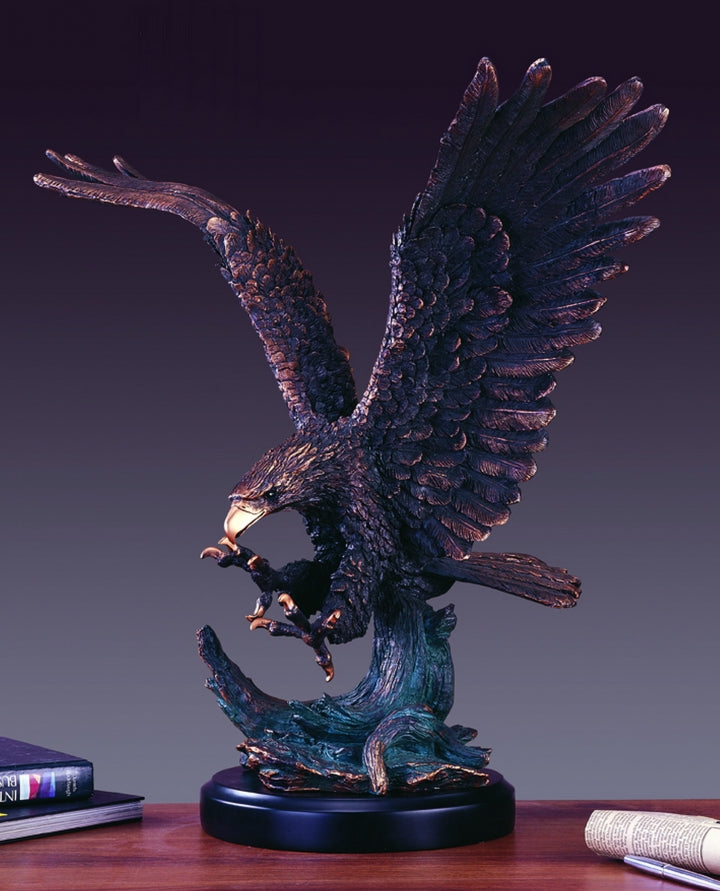 Bring elegance into your home or office with this Bronze Coated Eagle Sculpture. Famous for quality, design and detail, each of these bronze electroplated resin sculptures represents the beauty of nature. with the finest detail...