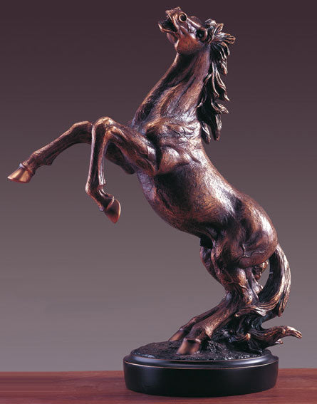 This "In Flight" Horse Sculpture is individually bronze plated. It is meticulously sculpted by hand to ensure this piece is of exceptionally fine detail as well as lasting durability to add beauty to your home or office.