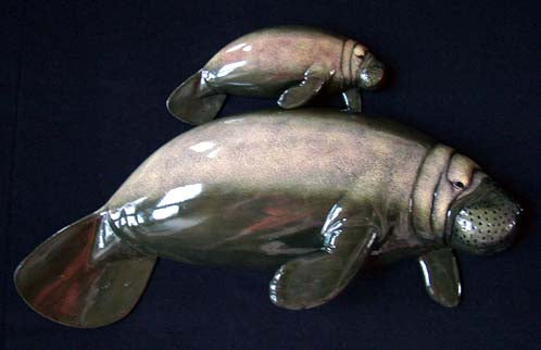 Set of 2! These high quality Manatees Wall Sculptures are beautifully hand painted in natural color and finished to the finest detail! You can hang the baby manatee below the mother manatee, above her or by her side. Delightful...