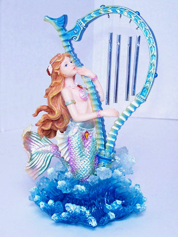 Experience the beauty and elegance of this Mermaid and Harp Wind Chime. This exclusive piece will brighten up your living corners with ever enchanting charm and inspiration. The detail and craftsmanship are unparalleled. It is ...