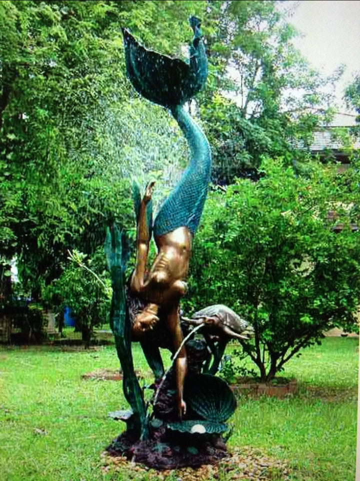 Exotic Custom Mermaid Diving for Pearl With Sea Turtle Dual Water Fountain, is cast using the "lost wax" process. This is the most precise metal casting technique in existence, ensuring accurate reproductions of the original sc...