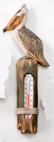 This Wooden Pelican Thermometer is intricately detailed with unparalleled craftsmanship. It is sure to be treasured and adored by all. A great accent for your outdoor space or any room in your home or office. Makes a great gift...