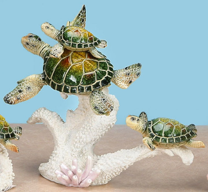 This magnificent Spectacular Sea Turtles Statue makes a great addition to any room or outdoor living area. With a traditional museum look it appears as though the sea life are swimming below the surface of the ocean. Reflectio...