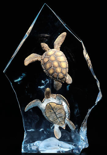 This "Intrepid Spirit" Limited Edition Sea Turtle Sculpture is created by award-winning artist Kitty Cantrell. These two turtles swim gracefully through the sea, encased by the Lucite® which surrounds their metal bodies. Cantre...