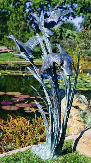This Flying Ducks Large Sculpture is made by hand in the ancient cire perdue, or lost wax method. Artistic and labor intensive, this process builds ultimate value into each sculpture.