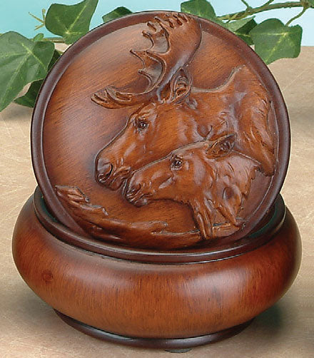 This Moose Trinket Box is of faux wood with a stunning detail finish. The history of the trinket box dates back to Limoge France in the 17th Century. It can be used for Secret Messages, Love Notes, Jewelry, storing precious Bab...