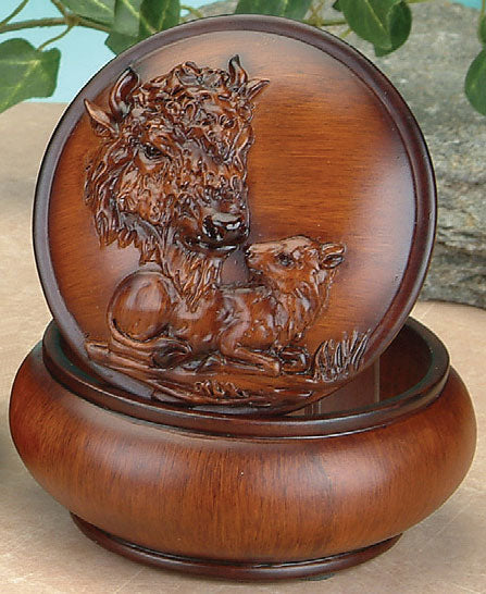 This beautiful BUFFALO TRINKET BOX is of faux wood with a stunning detail and finish. The history of the trinket box dates back to Limoge France in the 17th. Century. It can be used for secret messages, love notes, jewelry, sto...