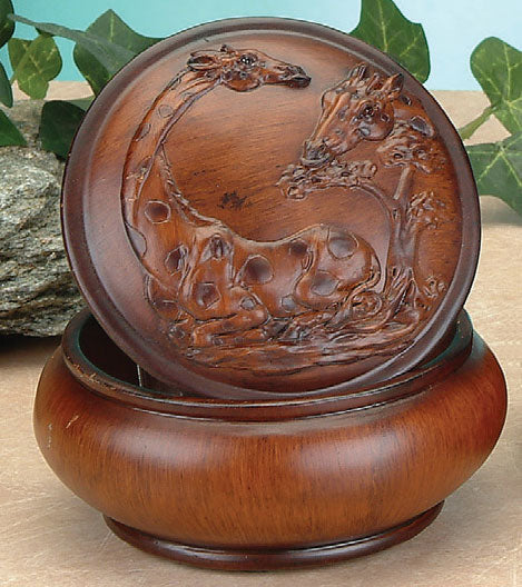 This beautiful GIRAFFES TRINKET BOX is of faux wood with a stunning detail finish. The history of the trinket box dates back to Limoge France in the 17th. Century. It can be used for Secret Messages, Love Notes, Jewelry, storin...