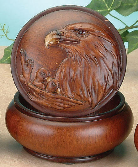 This beautiful EAGLES TRINKET BOX is of faux wood with a stunning detail finish. The history of the trinket box dates back to Limoge France in the 17th Century. It can be used for Secret Messages, Love Notes, Jewelry, storing p...