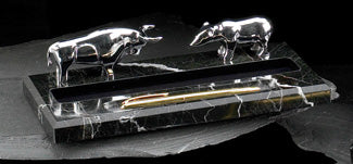 This unique Silver Bull & Bear Desk Clock is made of silver and marble with stunning detail finish. It can be used for Secret Messages, Love Notes, Jewelry, storing pens, precious Baby Keepsakes and other valuables.