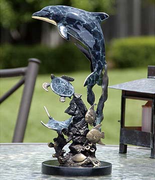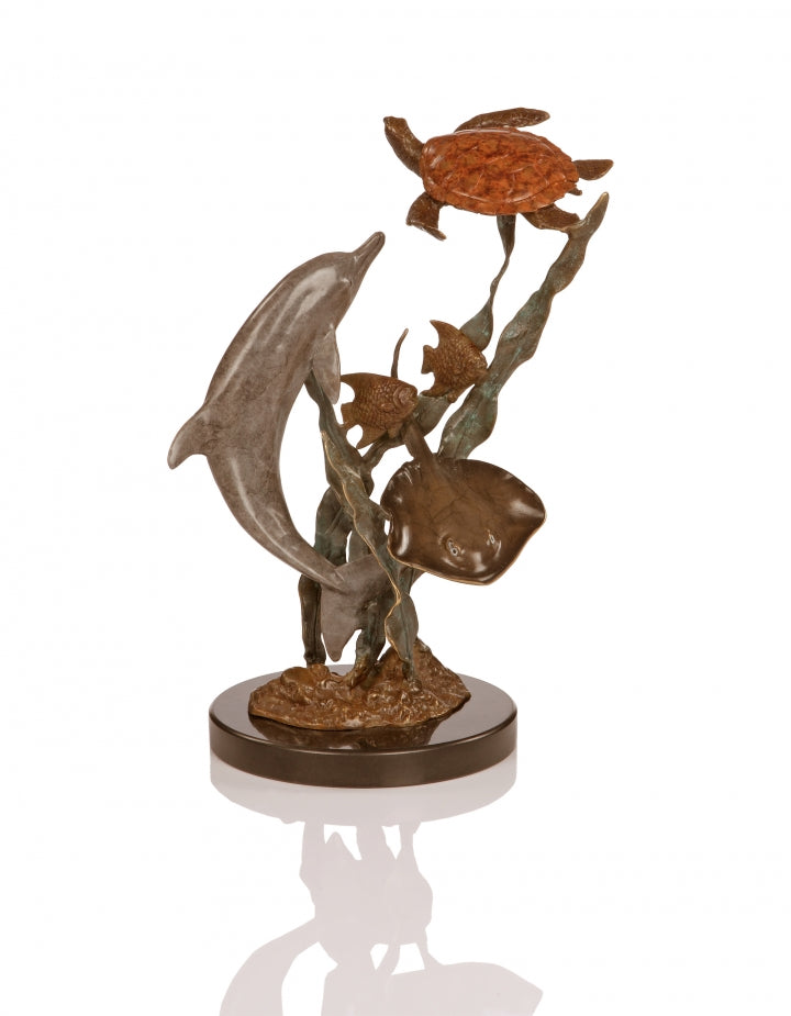 This magnificent Dolphin & Undersea Friends Sculpture makes a great addition to any room or outdoor living area. With a traditional museum look it appears as though the sea life are swimming below the surface of the ocean....