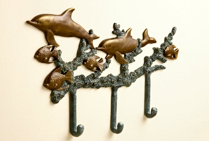 This stunning Dolphin & Tropical Fish Coat Hook will bring a unique and artistic addition to your home or office. Notice the beautiful antique finish! Handcrafted with the finest details and materials, this piece of functi...