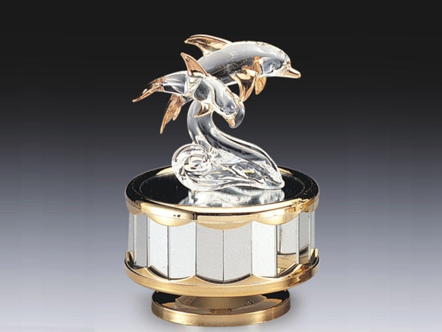 Embrace the beauty and elegance of the ocean with the Crystal Dolphin and Calf Figurine on Mirrored Box Seven Dolphins sculpture. This exquisite piece captures seven dolphins in a graceful arc, symbolizing unity, freedom, and t...