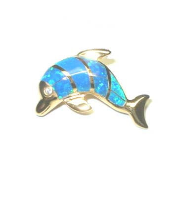 This stunning Gold Diving Dolphin Pendant is made of Created Opal, CZ Tanzanite and 14kt Gold over Sterling Silver. The pendant has a loop to place the pendant on any chain. A functional and timeless piece of artwork that will ...