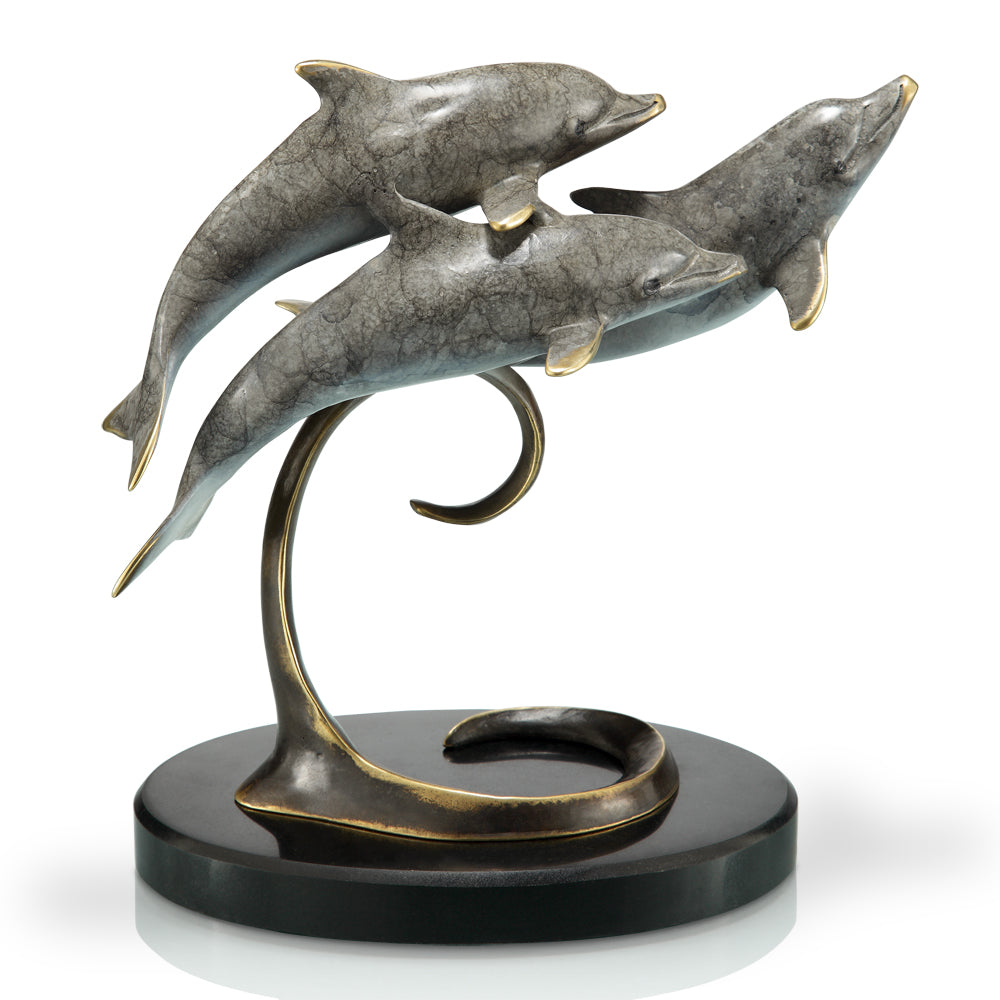 This magnificent Pod of 13 Dolphins Sculpture makes a great addition to any room or outdoor living area. With a traditional museum look it appears as though the sea life are swimming below the surface of the ocean. Reflections ...