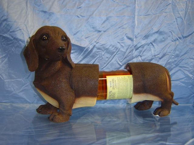 This beautiful Dachshund Wine Holder is hand made from the finest poly resin. Then it is meticulously hand painted with stunning detail. So realistic it almost appears that you can see the Dachshund Breath!