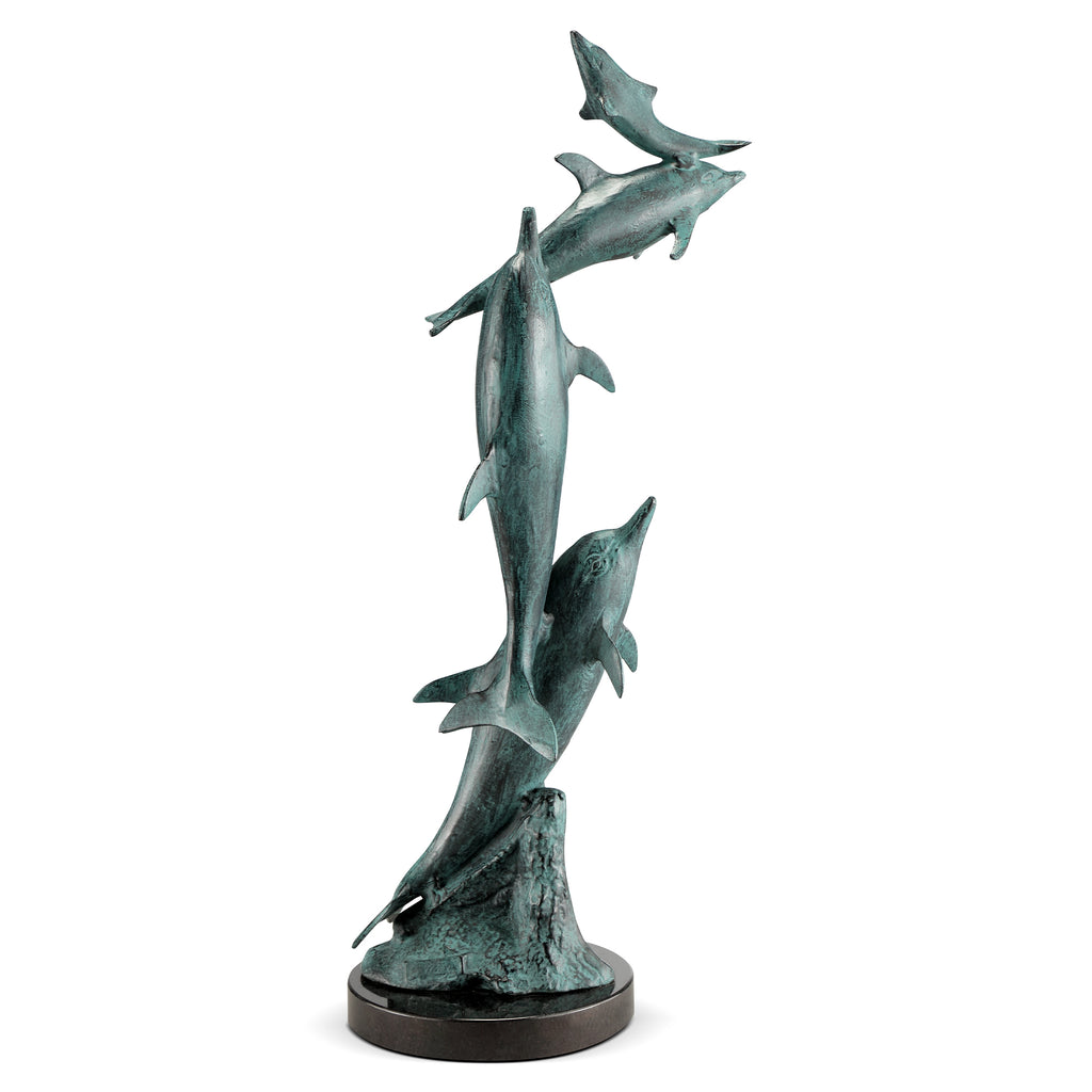 This "Aquatic Ballet" Limited Edition Sculpture is created by award-winning artist Kitty Cantrell. They swim, they dance. Their movements are in unison. These three dolphins create an aquatic ballet every day.