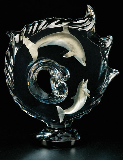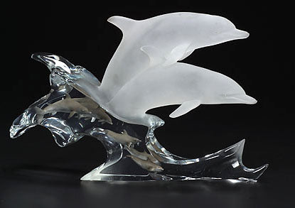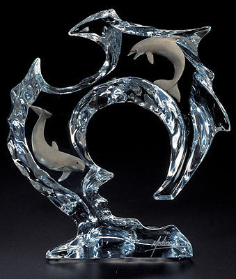 This limited Edition "Flow" Dolphin Sculpture is created by award-winning artistic genius Dan Medinas.This art piece is a uniquely shaped Lucite sculpture. Two dolphins swim magically through the sculpture itself and the art...