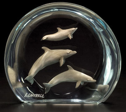 This Limited Edition "Encompassed" is created by award-winning artistic genius Dan Medinas. "Encompassed" was inspired by Dans previous, sold out sculpture entitled "Love Encompassed". A dolphin and her younger baby are encompa...