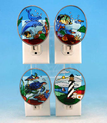 Stained Glass Nautical Nightlights in four assorted designs. These exclusive nightlights are made out of stained glass with a stunning detail finish. with the finest details and materials, this piece of functional art...