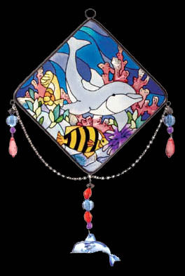 Little touches like this piece can really personalize and warm a home or work area. This pretty Dolphin Sun Jewel Sun-catcher uses hand painted glass and hanging jewels to connect with your playful and spiritual side. Make a ro...