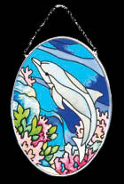 This stunning Oval Dolphin Sun Catcher will bring a unique and artistic addition to your home or office. Sun Catchers continue to be a popular choice for gifts. This colorful glass is bright and warming when placed near a windo...