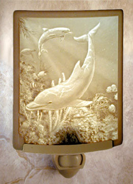 This Lithophane Dolphin Translucent Procelein Night Light by artist David Delamare is hand crafted in the U.S.A.