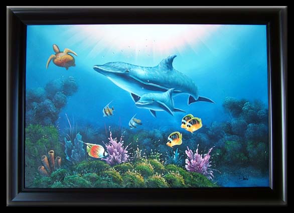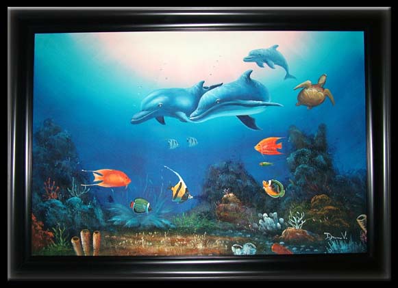 This beautiful Mother & Baby Dolphin painting is individually hand painted and signed by highly skilled and talented artist Dianna V. It is meticulously hand finished, brush stroke by brush stroke, with incredible detail, r...