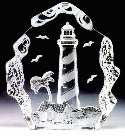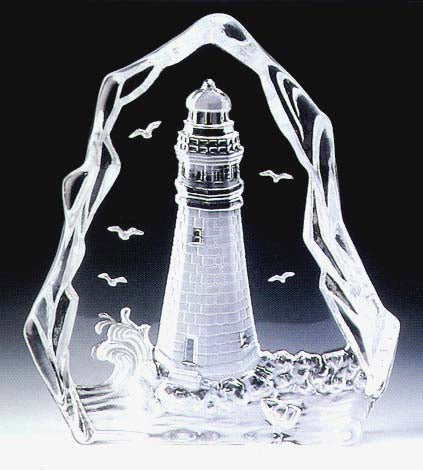 This beautiful Lighthouse Leaded Crystal Sculpture is an attractive addition to your home or office decor. The 3D lighthouse image seems to float inside the transparent crystal form. The lighthouse, ocean and gulls are intricat...