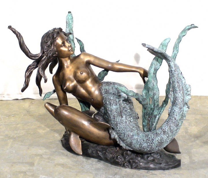This beautiful Mermaid with Dolphin Table Base is cast using the "lost wax" process. This is the most precise metal casting technique in existence, ensuring accurate reproductions of the original sculpture and exquisite detail....