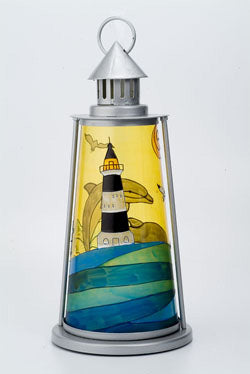 Wholesale; Sold by case only This enchanting Lighthouse & Dolphin Candle Lamp will bring a unique and artistic addition to your home or office. With bright, playful colors, this underwater scene will make a beautiful accent...